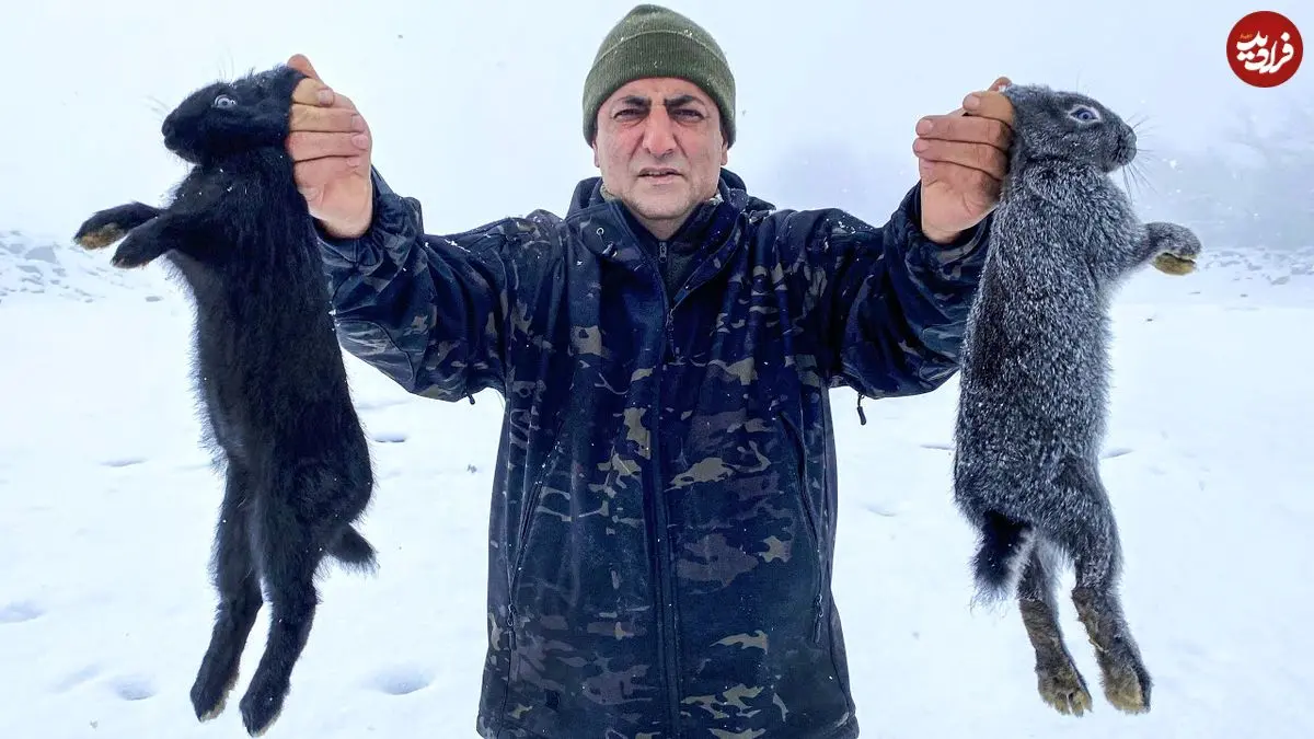 ببینید| غذای روستایی در آذربایجان؛ پخت غذا با خرگوش و سبزیجات در کوهستانی برفی