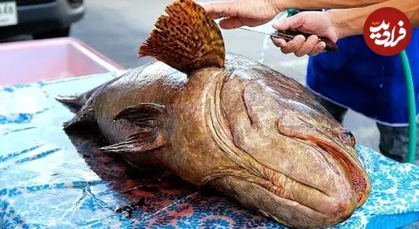 ببینید| غذای خیابانی در تایلند؛ برش و پخت غذا با ماهی هامور غول پیکر در بانکوک