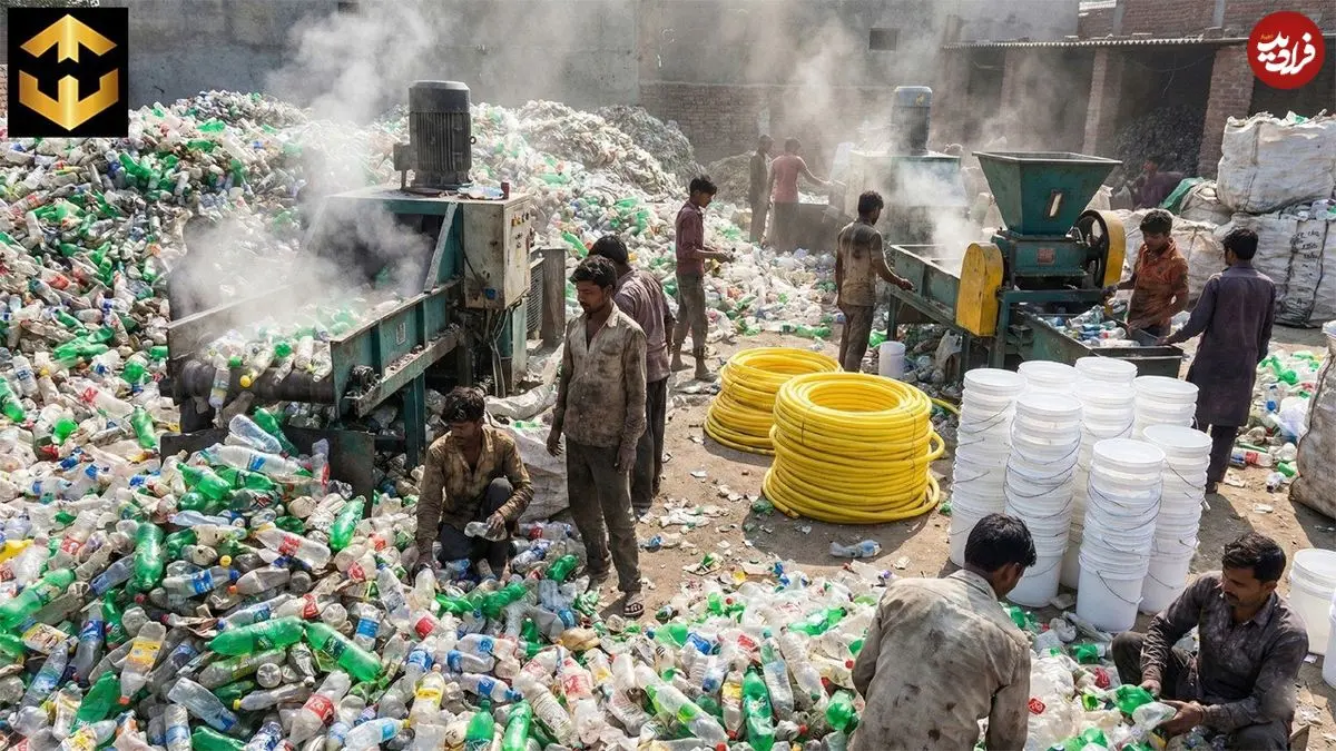 ببینید| مراحل دیدنی بازیافت ضایعات پلاستیکی و تولید سطل، صندلی و شلنگ با آنها