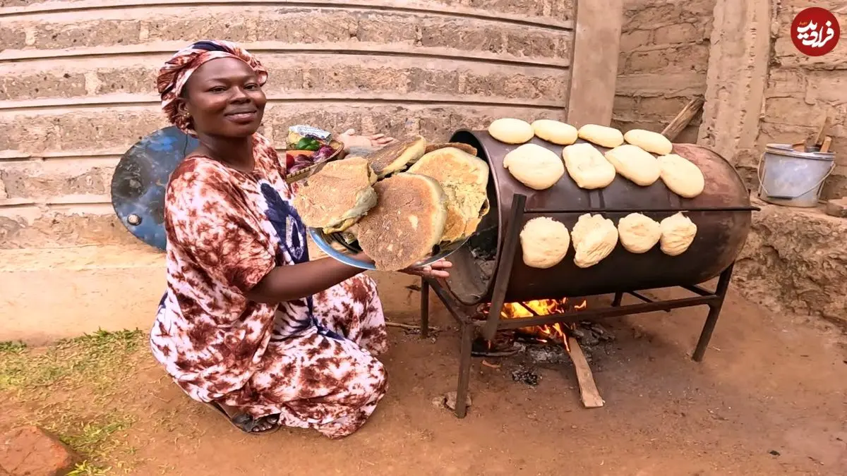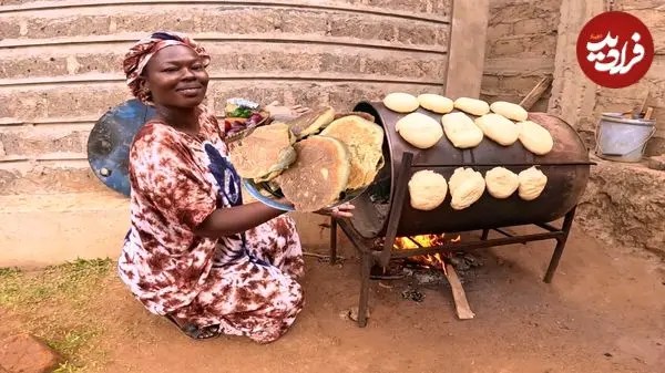 ببینید| غذای روستایی در کنیا؛ پخت نان سنتی روی بشکه و تهیه چای لیمویی