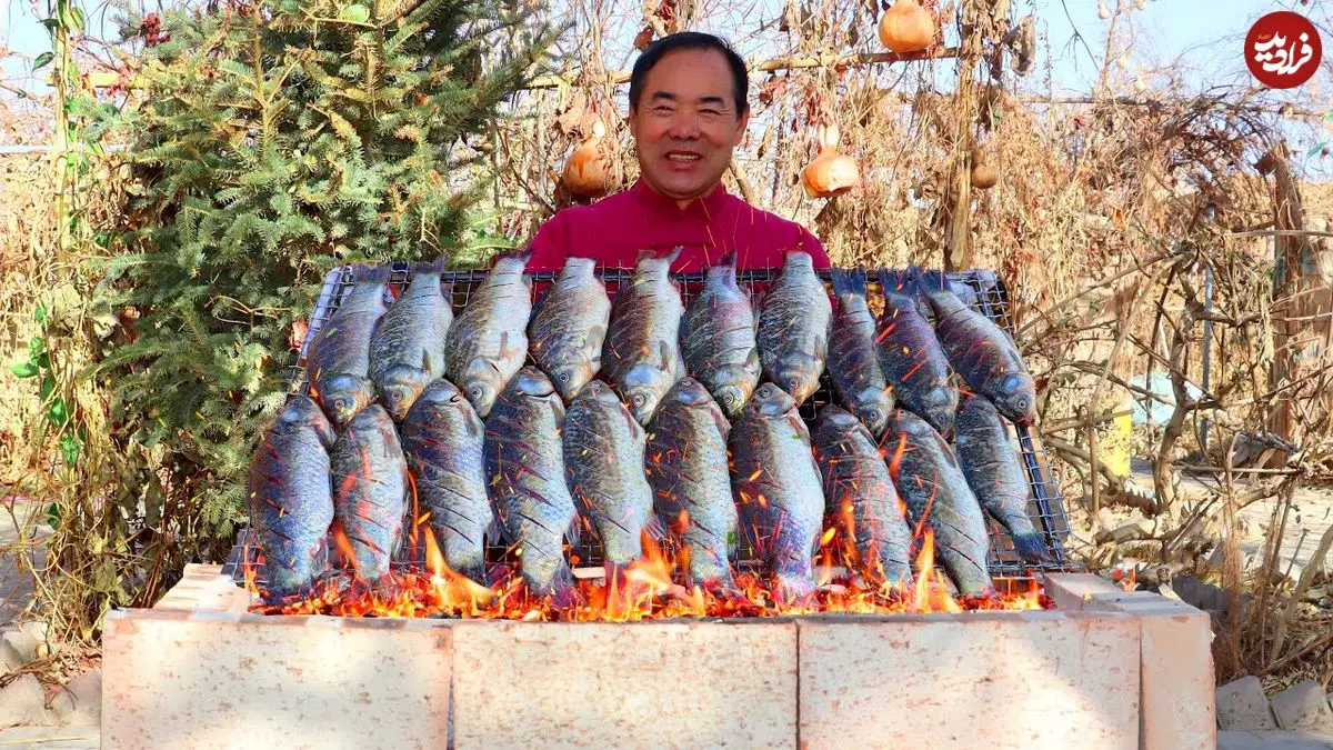 ببینید| غذای روستایی در چین؛ کباب کردن 20 ماهی به روش سنتی در روستا