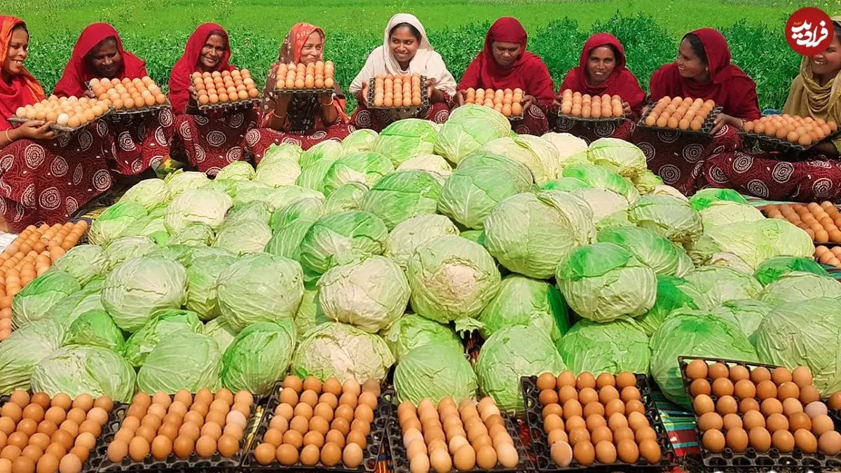 در این ویدئو تعدادی بانوی آشپز ساکن یکی از روستاهای هند را می بینید که با 200 کیلوگرم کلم و 500 عدد تخم مرغ یک املت سنتی درست می کنند.