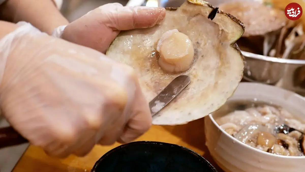 ببینید| غذای خیابانی در ژاپن؛ پخت غذا با شاه خرچنگ، صدف دو کفه ای و خاویار در توکیو