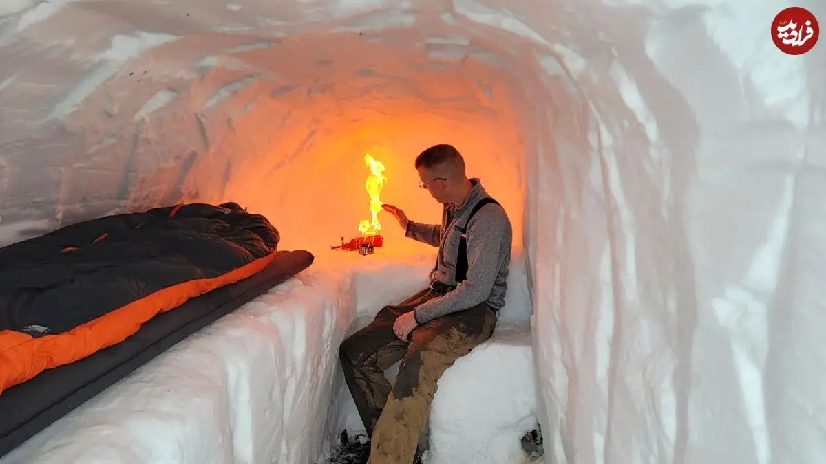 ببینید| فرآیند دیدنی ساخت یک پناهگاه زیر سه متر برف در آلاسکا