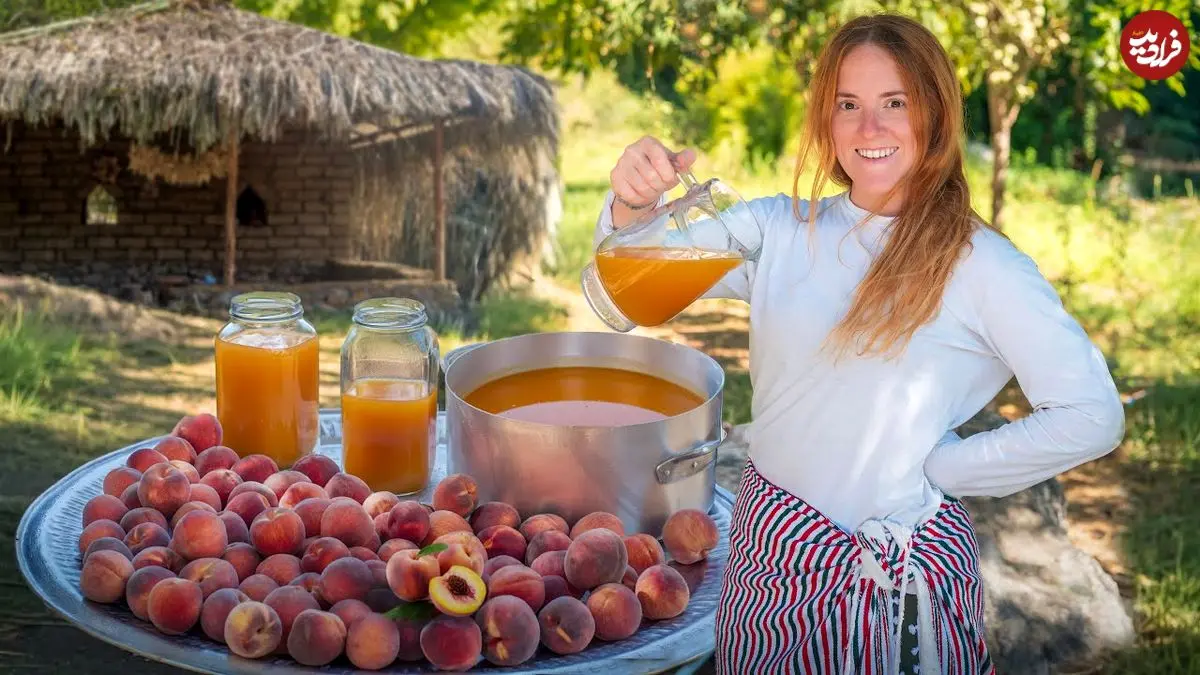 ببینید| غذای روستایی در مراکش؛ برداشت هلو و تهیه آبمیوه با آن و پخت مرغ در تنور گِلی