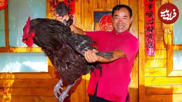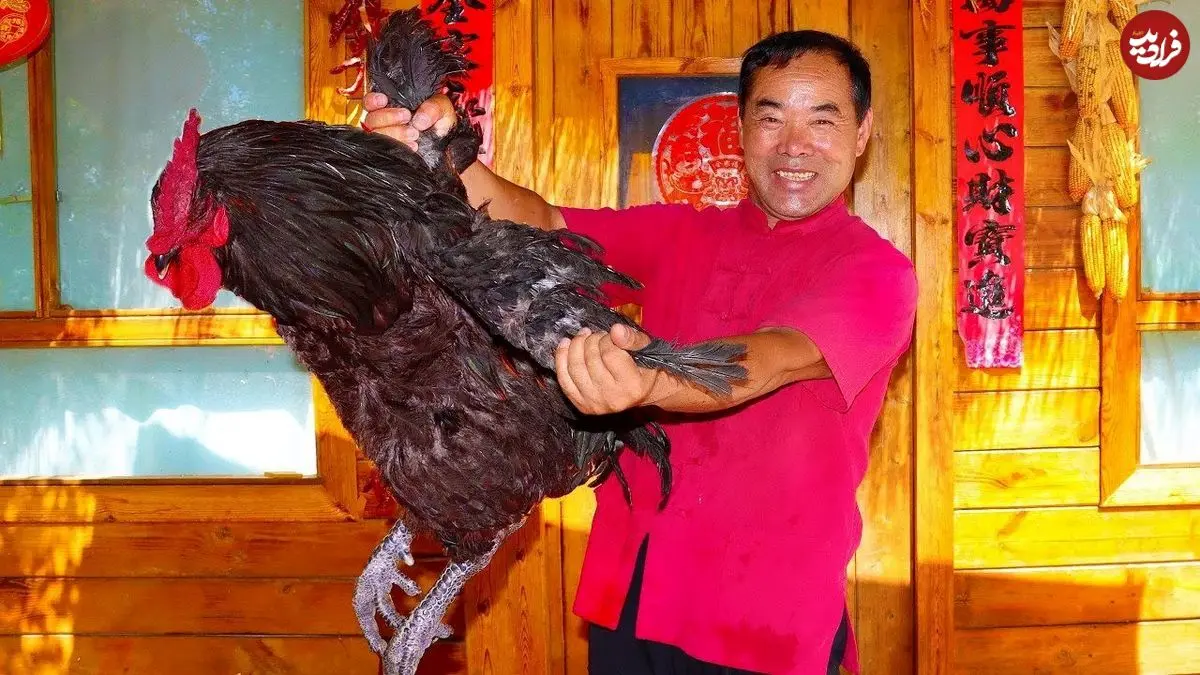 ببینید| غذای روستایی در چین؛ پخت یک غذای خاص با خروس سیاه بزرگ