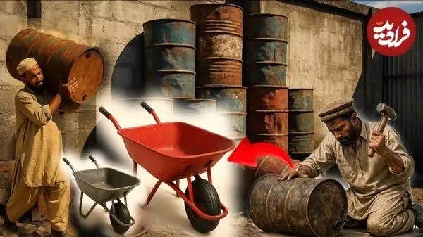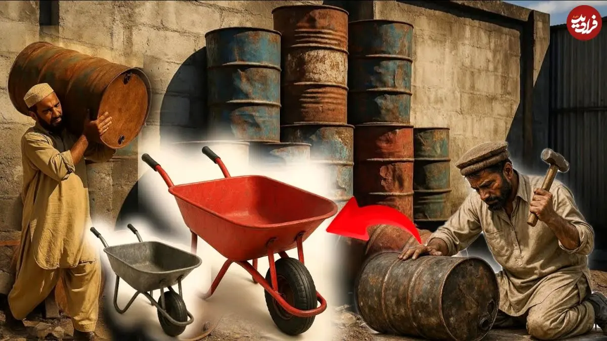 ببینید| فرآیند دیدنی تبدیل بشکه های قدیمی به فرغون در پاکستان