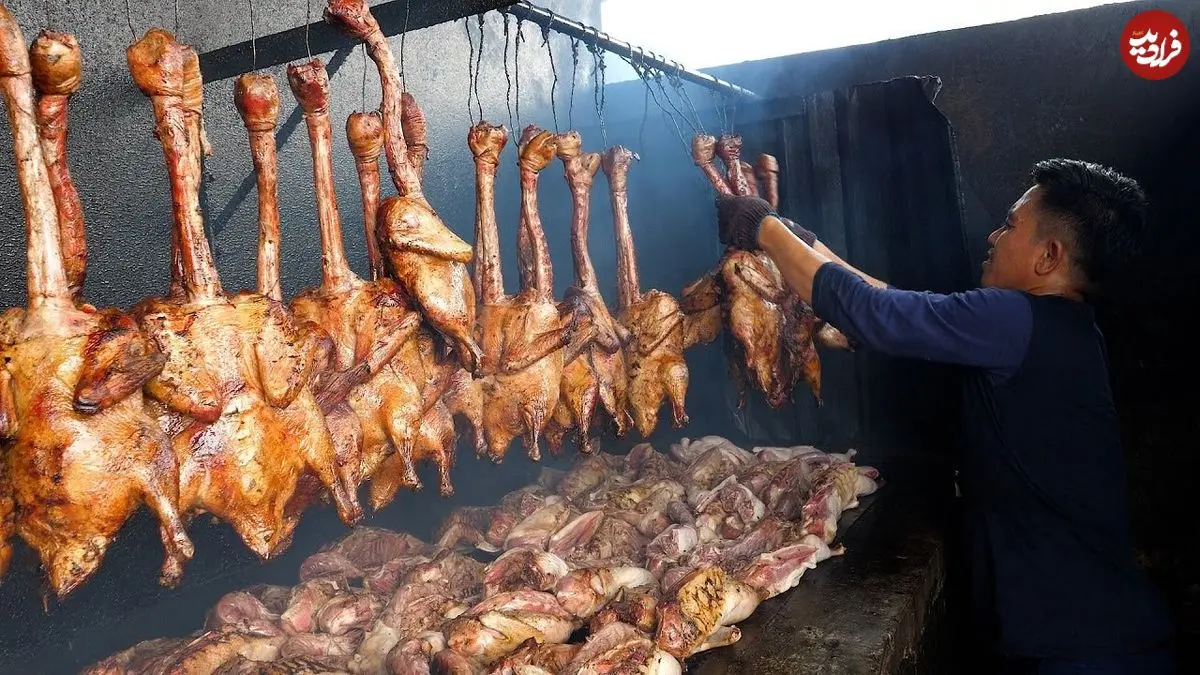 این ویدئو که در یکی از خیابان های سلانگور مالزی ضبط شده است، مراحل کباب کردن اردک روی آتش را توسط آشپزهای حرفه ای نشان می دهد.