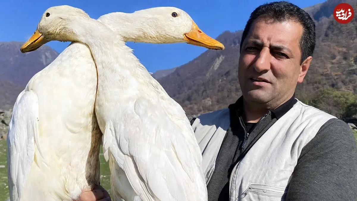 ببینید| غذای روستایی در آذربایجان؛ پخت غذا با اردک و سیب زمینی در کوهستان