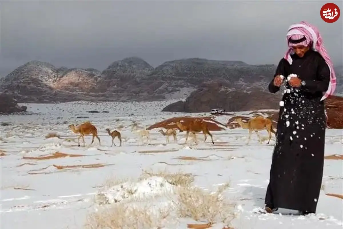انتشار ویدیوهایی از حالوهوای متفاوت شهرهای عربستان سعودی پس از بارش برف و باران، توجه کاربران شبکههای اجتماعی را جلب کرده است. در یکی از این ویدیوها، مردی سعودی با لباس سنتی (دشداشه) و با مهارت روی برفهای ارتفاعات «تبوک» اسکی میکند و در ویدیویی دیگر، مردی از شدت ذوقزدگی برای بارش باران در حاشیه جاده کف میزند و شادی میکند. تصاویر عبور کاروان شترها از میان دشتهای سفیدپوش نیز تضاد دیدنی طبیعت کویری و سرمای زمستانی را به نمایش گذاشته است.