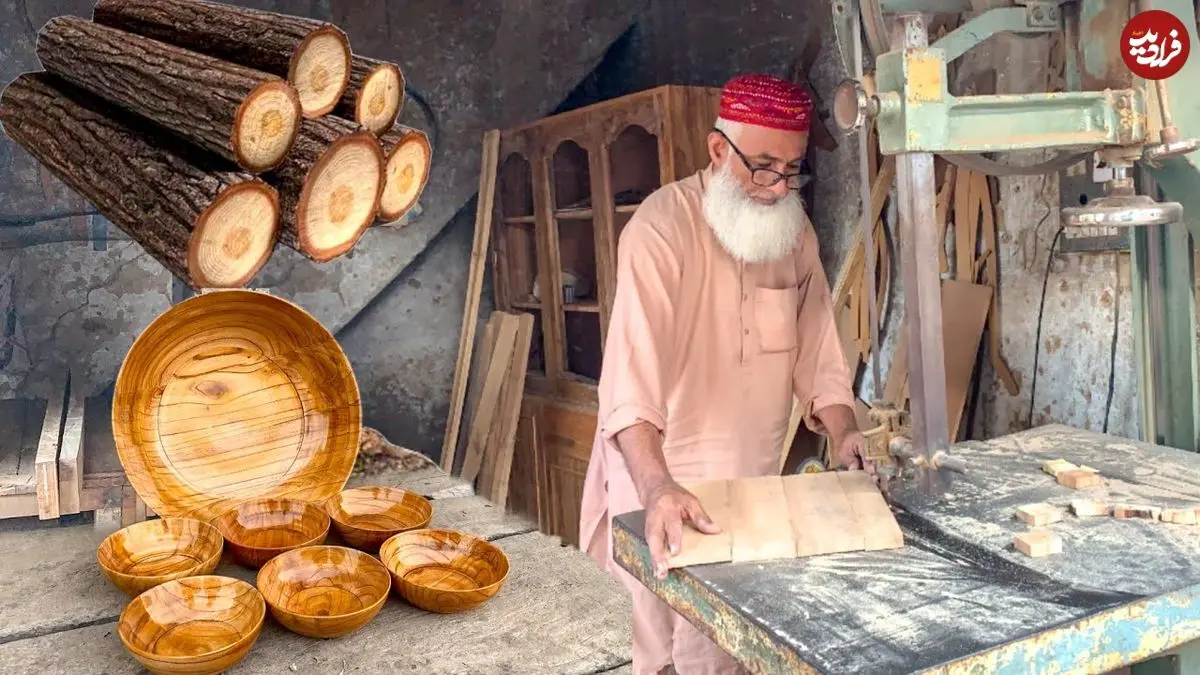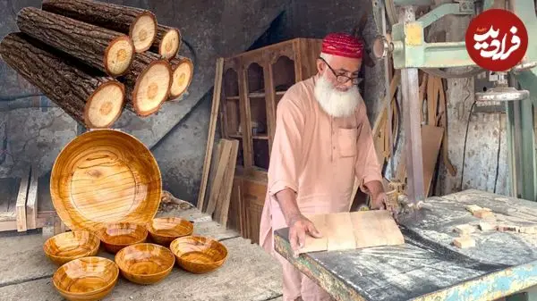 ببینید| فرآیند دیدنی تولید کاسه های چوبی زیبا در کارگاهی در پاکستان