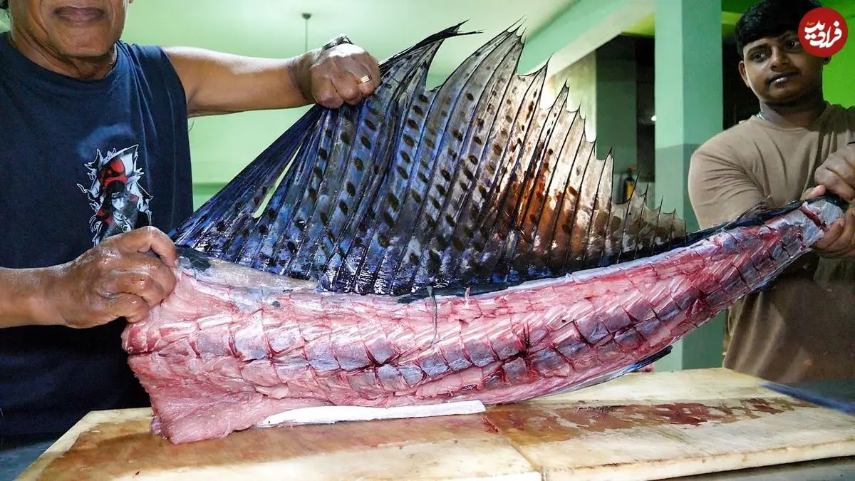 ببینید| غذای خیابانی در سریلانکا؛ کباب کردن بادبان ماهی در کلمبو