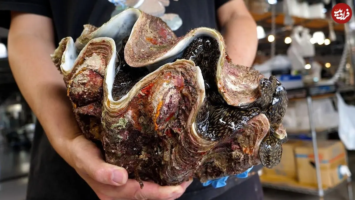 ببینید| غذای خیابانی در ژاپن؛ برش ماهرانه و تهیه ساشیمی با صدف غول پیکر در توکیو