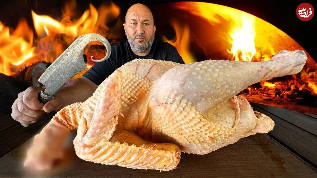 ببینید| غذای روستایی در روسیه؛ پخت یک غذای خاص با بوقلمون و برنج
