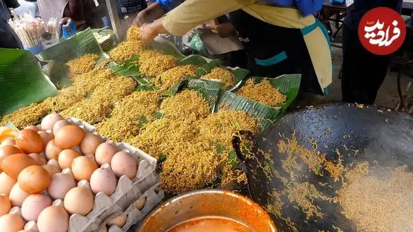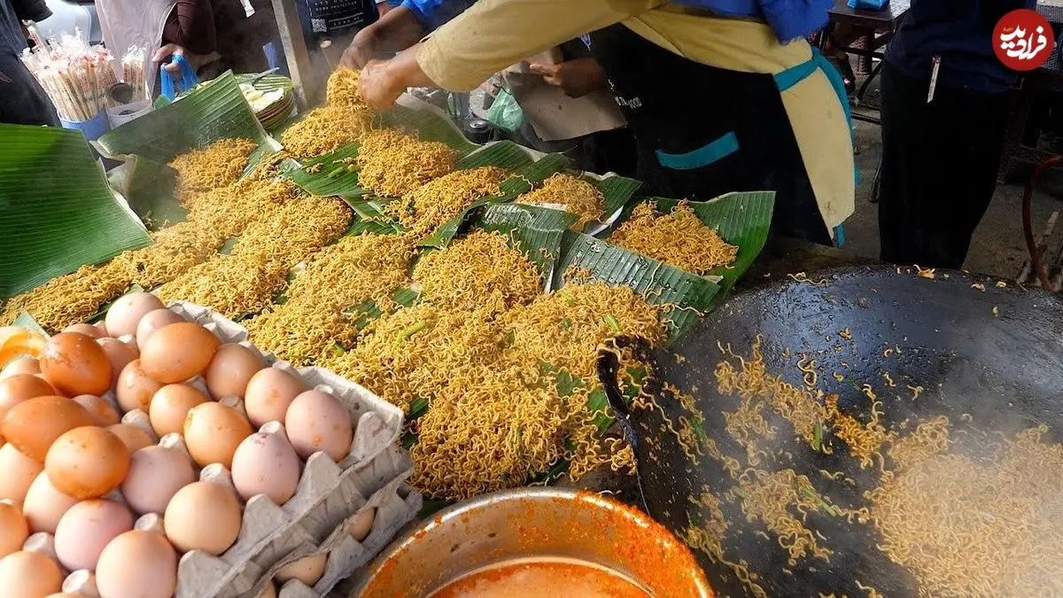 ببینید| غذای خیابانی در اندونزی؛ نودل سرخ شده با نیمرو در جاکارتا