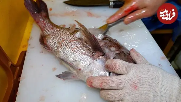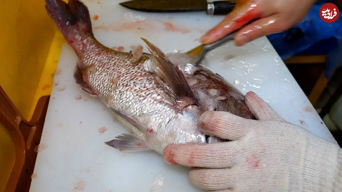 ببینید| غذای خیابانی در کره؛ تهیه ساشیمی با ماهی و اختاپوس کبابی در سئول
