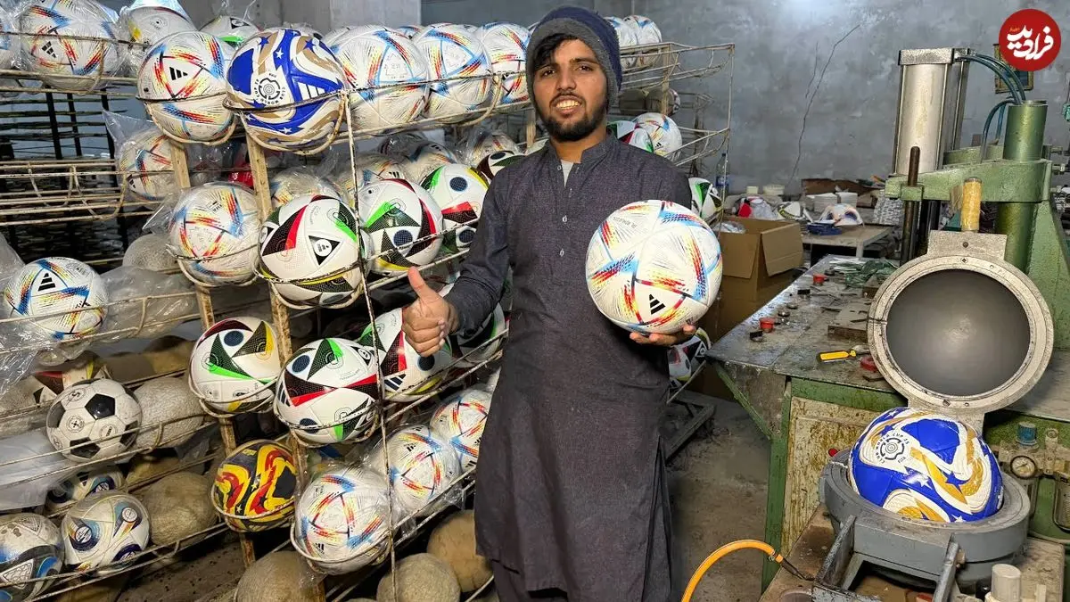ببینید| مراحل دیدنی تولید انبوه و دستی توپ فوتبال در پاکستان