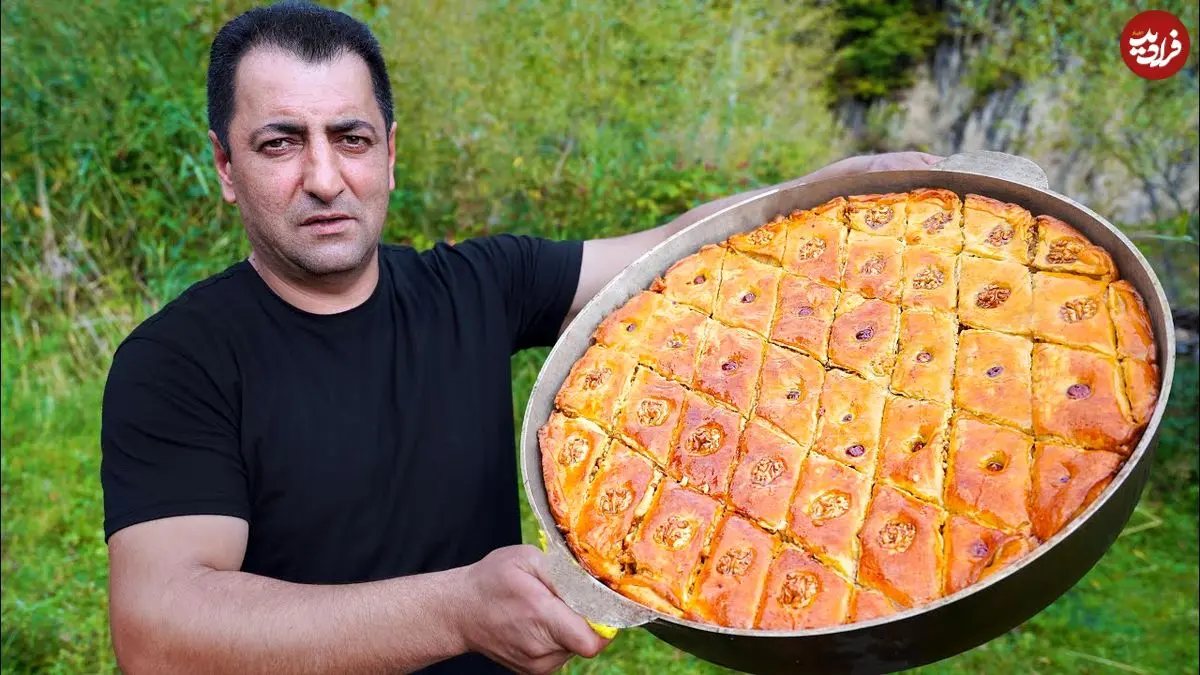 این ویدئو یک آشپز مشهور ساکن یکی از روستاهای آذربایجان را می بینید که با گردوهای تازه، یک باقلوای خوشمزه درست می کند.