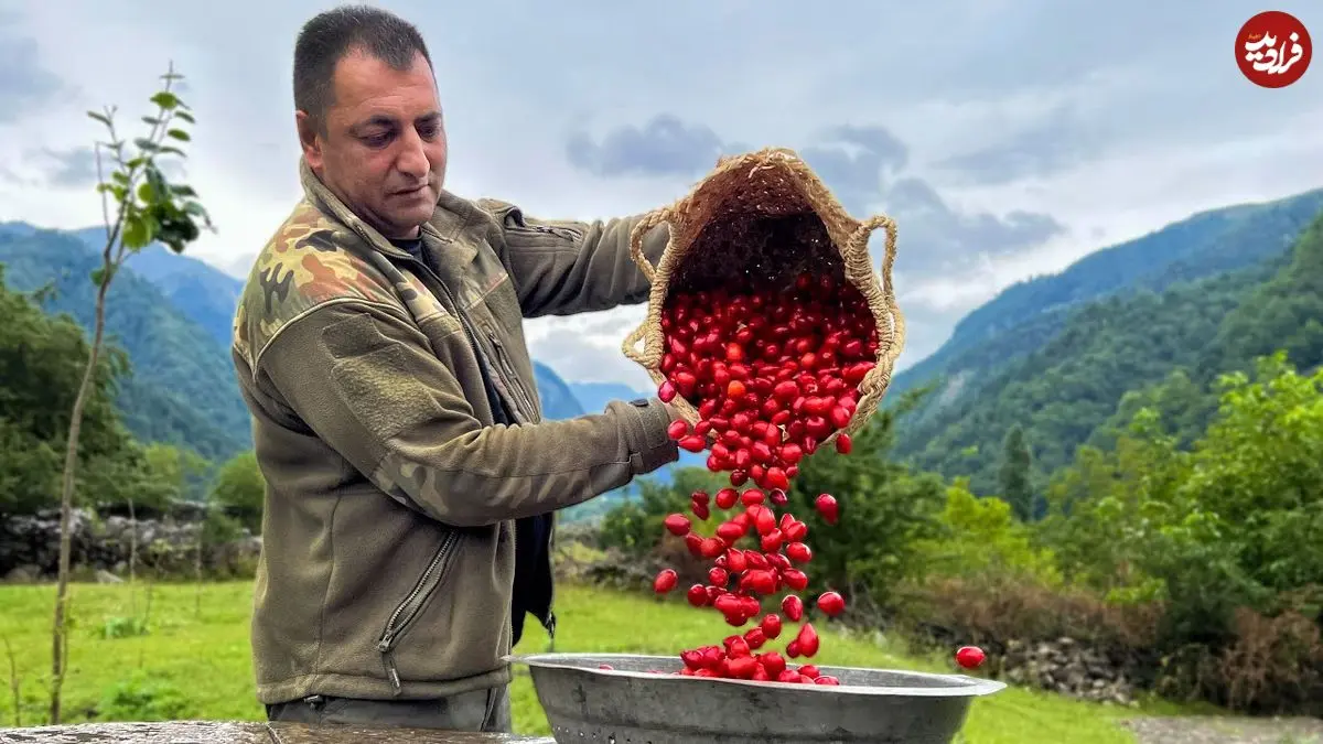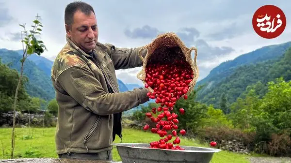 ببینید| غذای روستایی در آذربایجان؛ پخت یک غذای سنتی با برنج، گوشت و زغال اخته