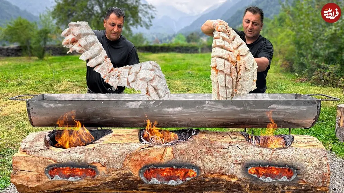 ببینید| غذای روستایی در آذربایجان؛ پخت یک غذای خاص با ماهی سالمون در یک روستای بهشتی