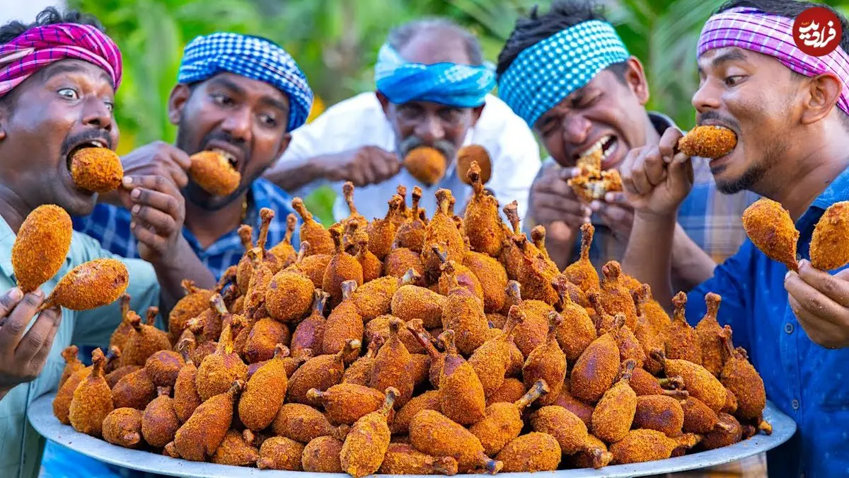 ببینید| غذای روستایی در هند؛ تهیه ران مرغ سوخاری و پوره سیب زمینی در طبیعت روستا
