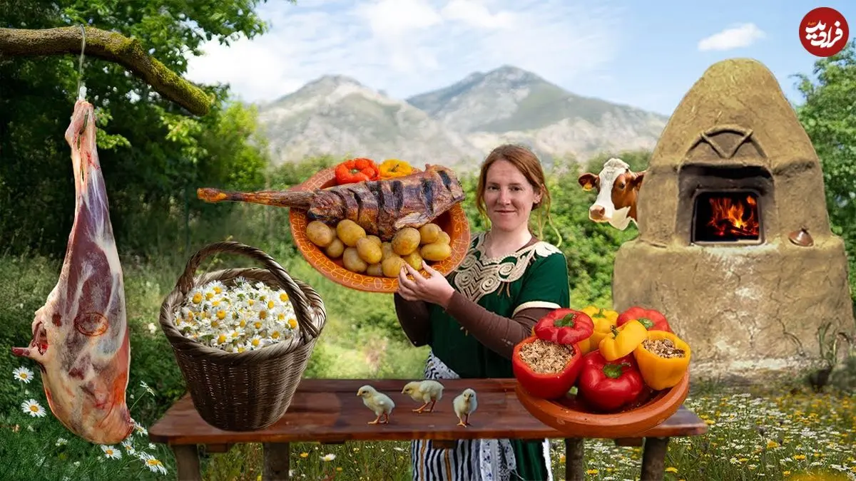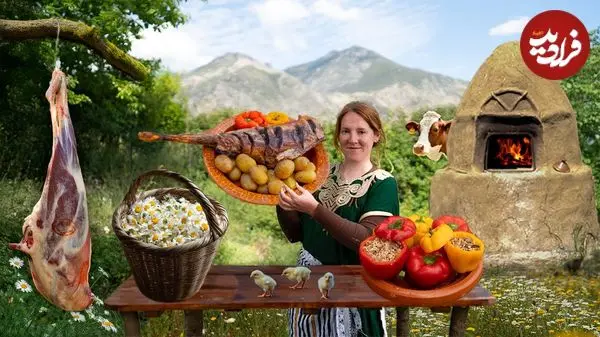 ببینید| غذای روستایی در مراکش؛ چیدن گل های بابونه وحشی و کباب کردن ران بره در تنور