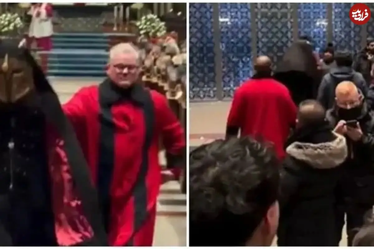 ببینید| مرد مرموز مراسم کریسمس را مختل کرد