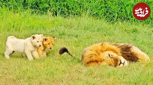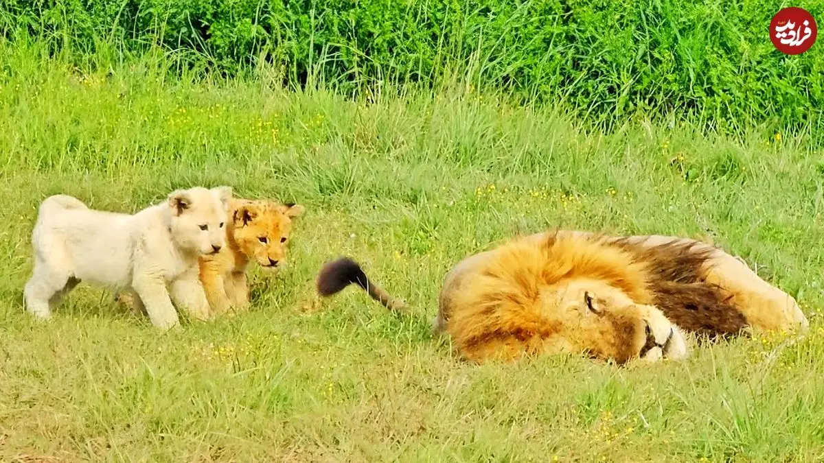 در این ویدئو، دو توله شیر بازیگوش را می بینید که با دم پدرشان که در حال استراحت است بازی میکنند و این کار موجب عصبانیت سلطان جنگل میشود. این صحنه های زیبا در پارک ملی کروگر در آفریقای جنوبی ضبط شده است.