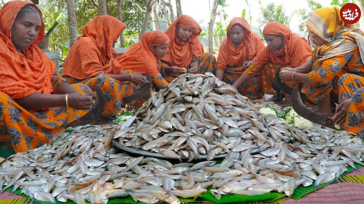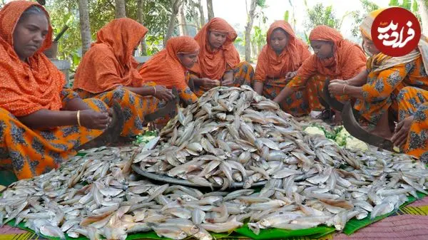 ببینید| غذای روستایی در هند؛ پخت خوراک کاری با ماهی های کوچک و سبزیجات در روستا