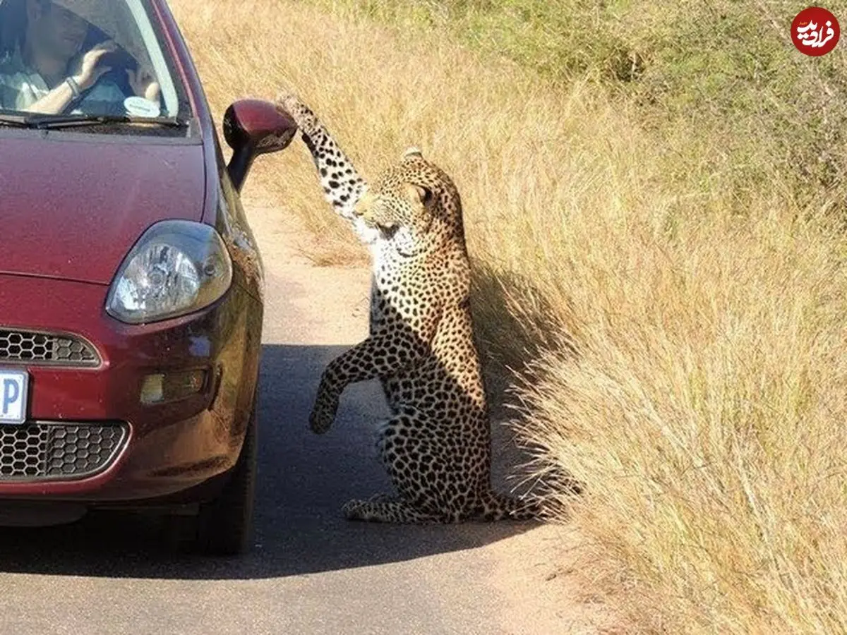 ببینید| بازی بامزه «پلنگ» با تصویر بازتابشده خودش روی بدنه خودرو!