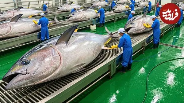 ببینید| مراحل دیدنی صید هزاراان ماهی تن از اقیانوس و فرآوری آن ها در آمریکا