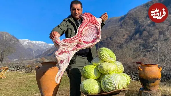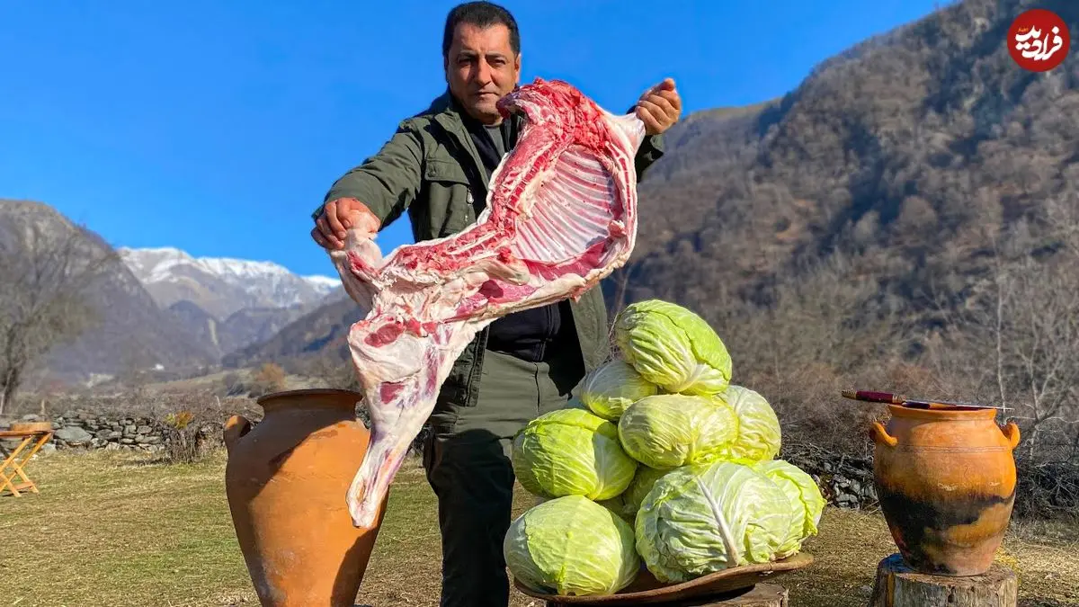 ببینید| غذای روستایی در آذربایجان؛ پخت دلمه کلم با گوشت بره در روستا