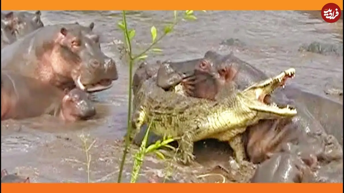یک تمساح که وارد قلمروی اسب آبی های شده بود با حمله وحشیانه آنها روبرو شد. این لحظات در پارک ملی کروگر در آفریقای جنوبی ضبط شده است.