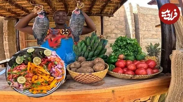 ببینید| غذای روستایی در کنیا؛ پخت ماهی در برگ موز و روی آتش