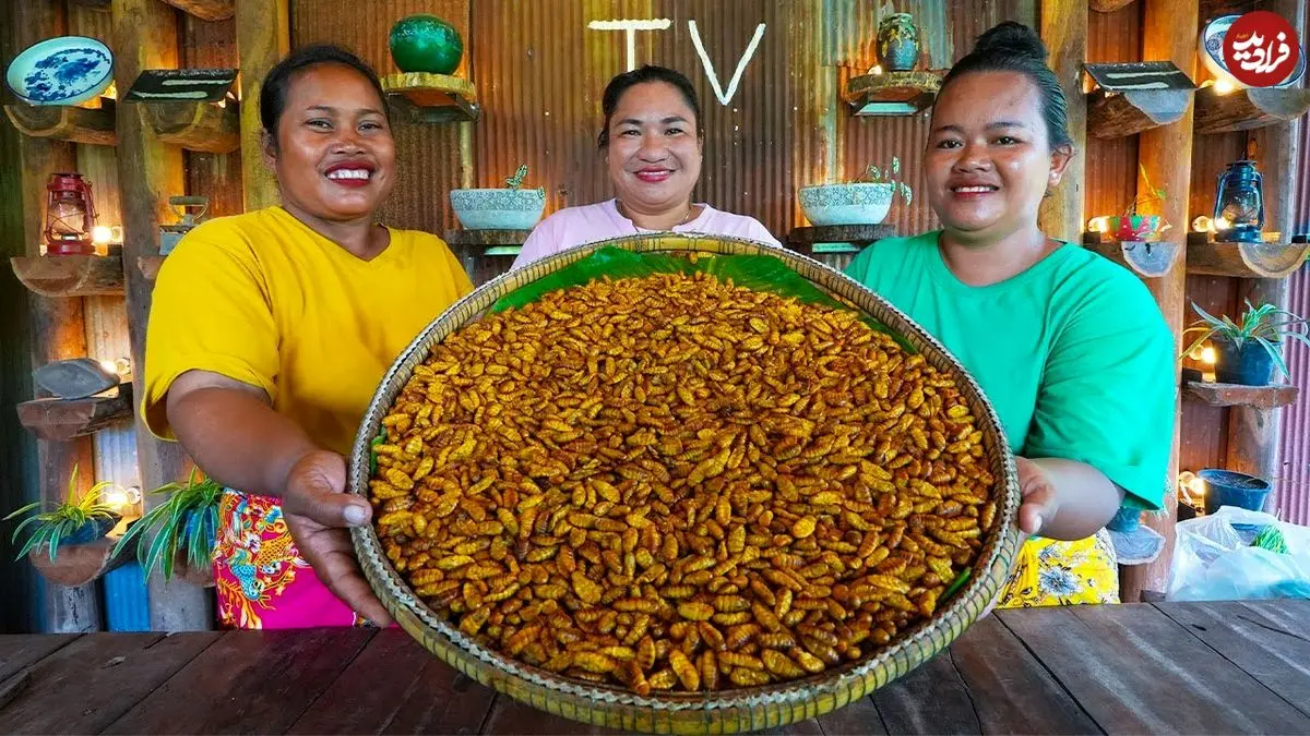 ببینید| غذای روستایی در سنگاپور؛ پخت یک غذای عجیب با کرم ابریشم