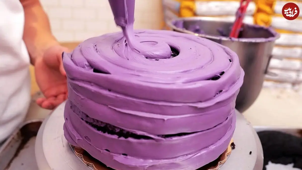 این ویدئو که در یکی از خیابان های نیویورک آمریکا ضبط شده است، مراحل تهیه کیک لایه ای بنفش را توسط قنادی ماهر می بینید.
