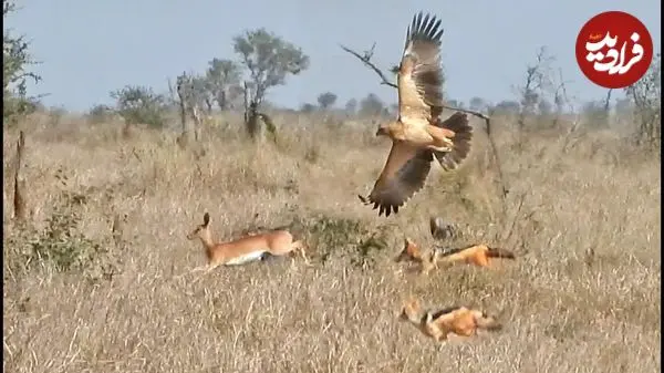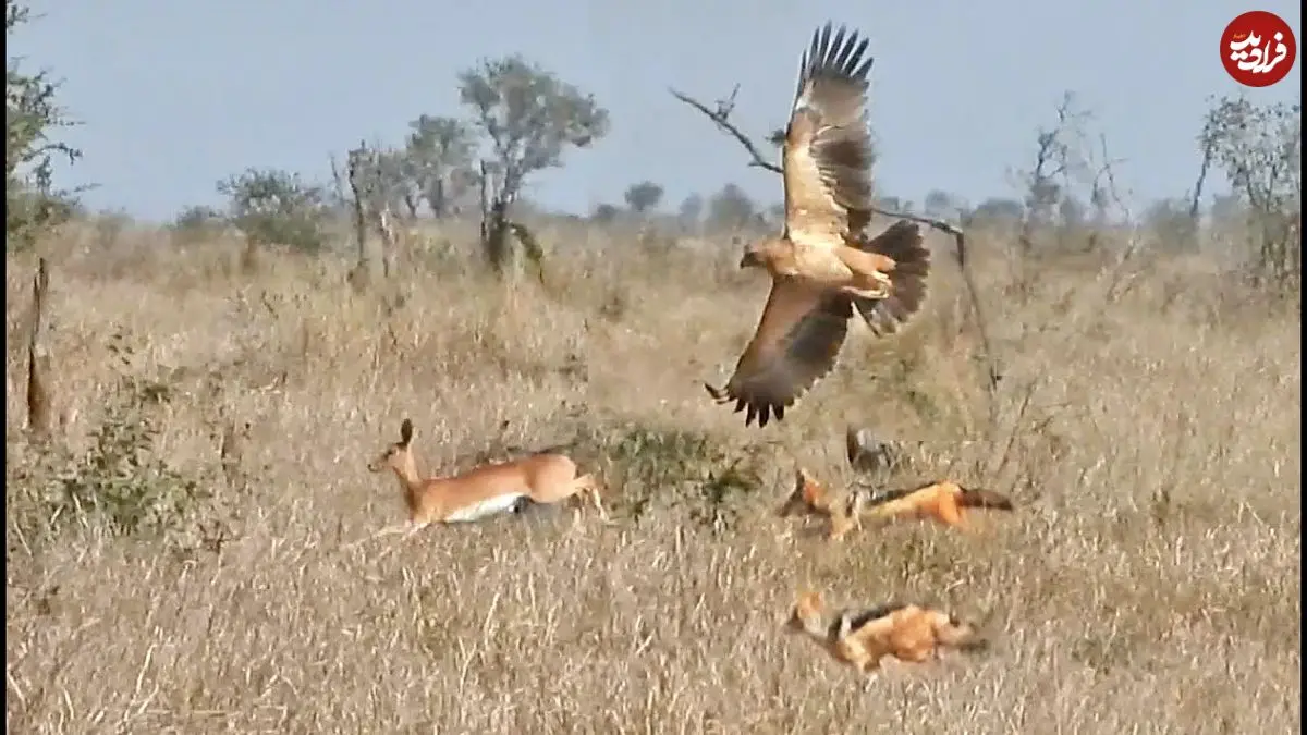 ببینید| حمله همزمان عقاب و دو شغال گرسنه به یک آهو