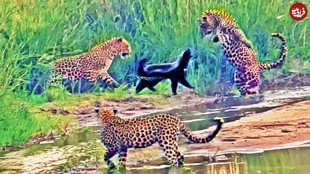ببینید| نبرد حماسی یک گورکن عسل خوار با 3 پلنگ گرسنه
