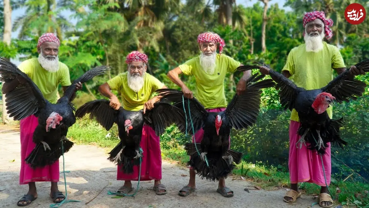ببینید| غذای روستایی در هند؛ پخت خوراک بوقلمون و سیر توسط 4 پدربزرگ روستایی