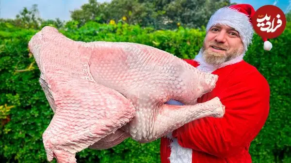 ببینید| غذای روستایی در آذربایجان؛ پخت بوقلمون شکم پر در تنور