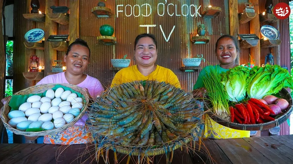 در این ویدئو 3 بانوی آشپز ساکن یکی از روستاهای سنگاپور را می بینید که با میگوی آب شیرین، تخم مرغ و سبزیجات یک خوراک آماده می کنند.