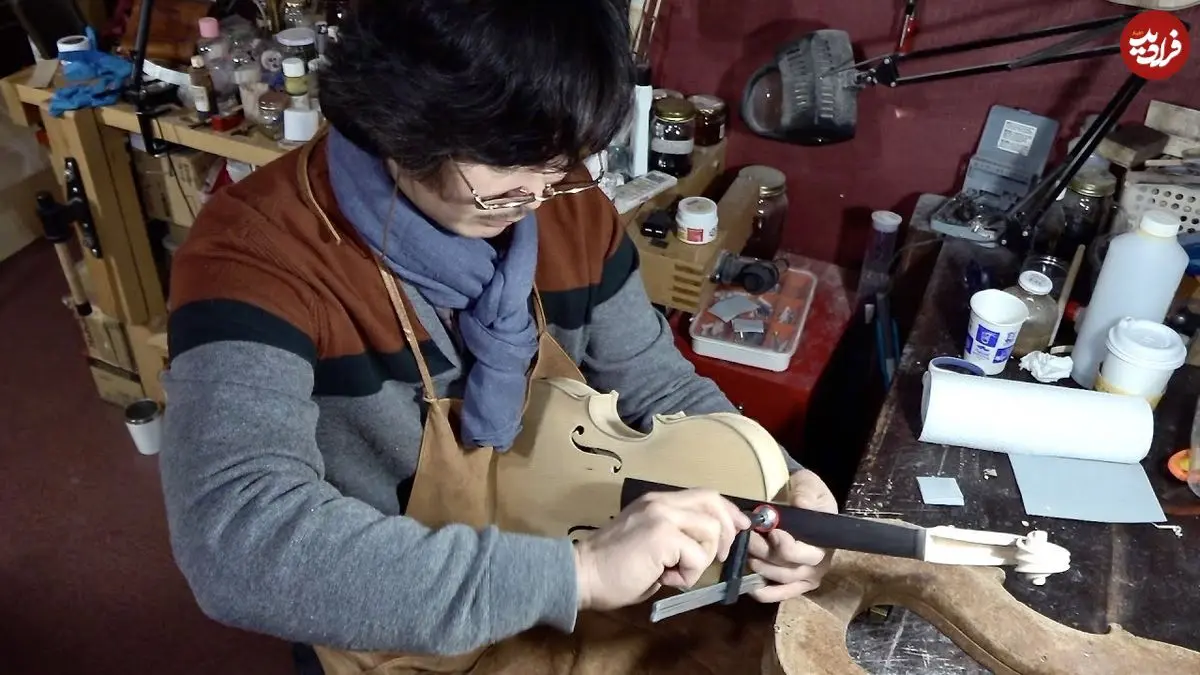 ببینید| فرآیند دیدنی ساخت ویولن توسط استاد ماهر کره ای