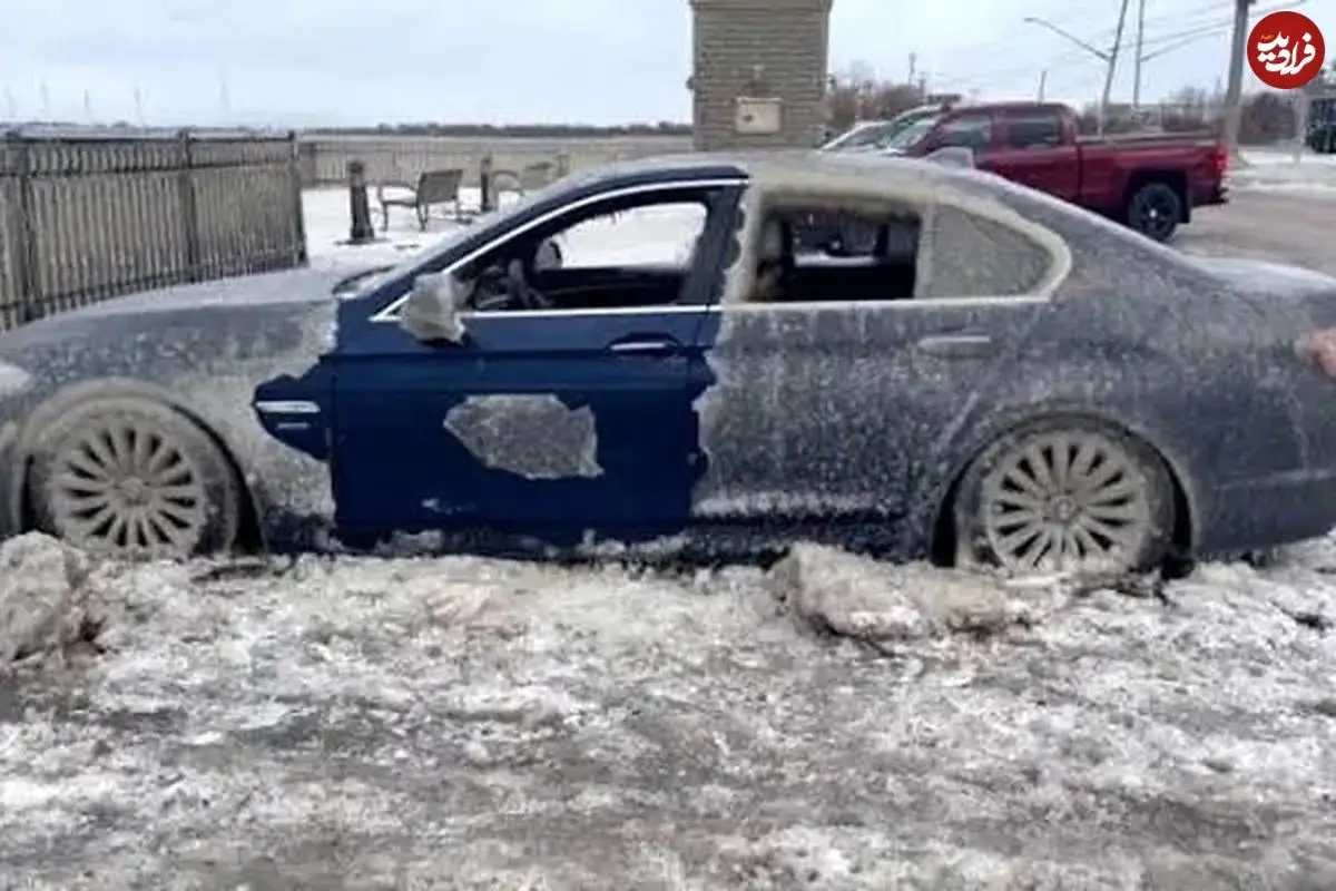 ببینید| خودروی BMW سرقتی بر اثر سرمای شدید یخ زد