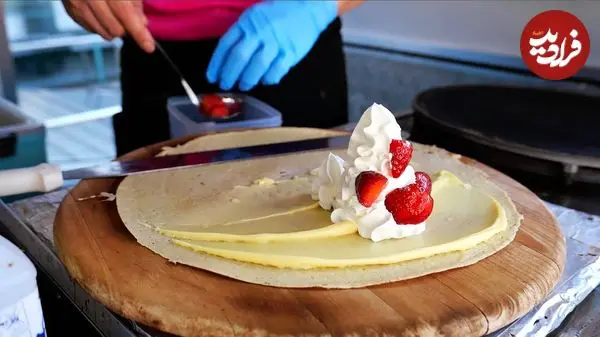 ببینید| غذای خیابانی در ژاپن؛ تهیه چیز کیک توت فرنگی در توکیو