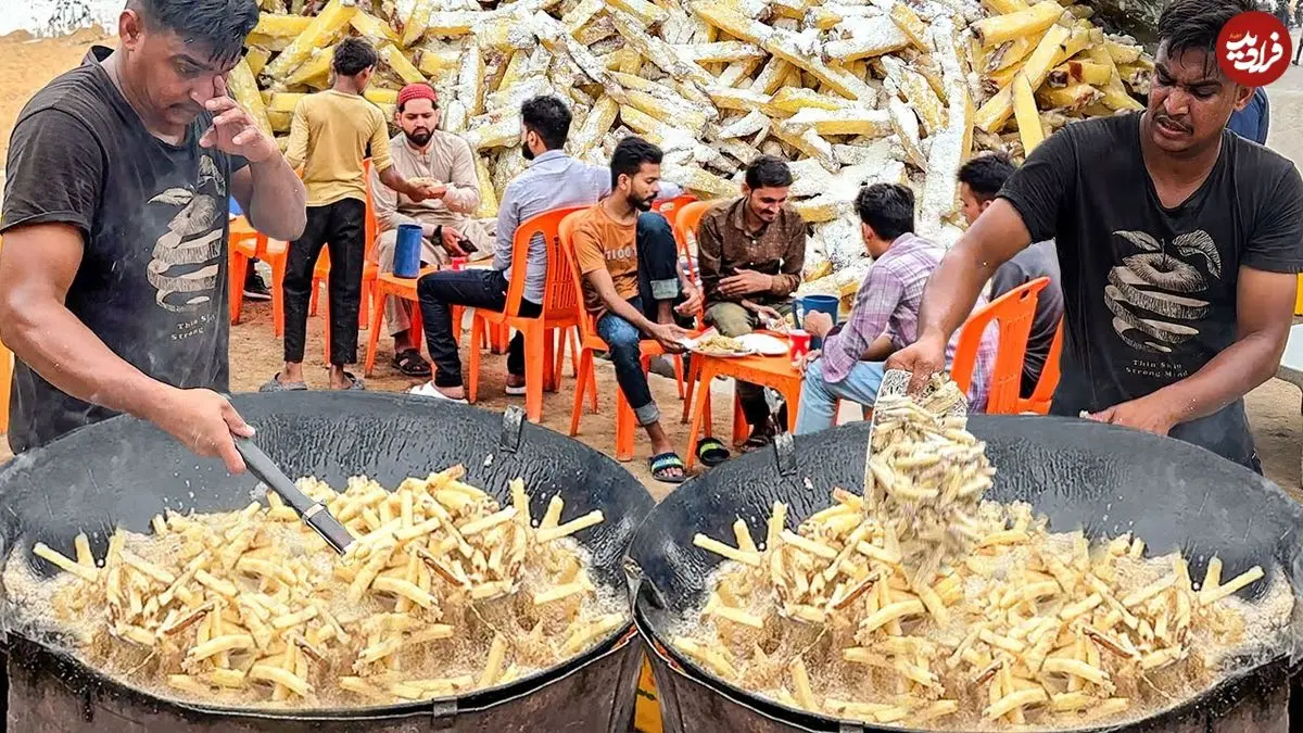 ببینید| غذای خیابانی در پاکستان؛ تهیه سیب زمینی سرخ کرده با تخم مرغ و ادویه در کراچی