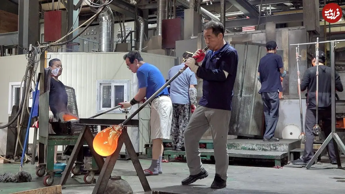 ببینید| فرآیند تولید بطری های شیشه ای بزرگ در کارخانه ای در سئول