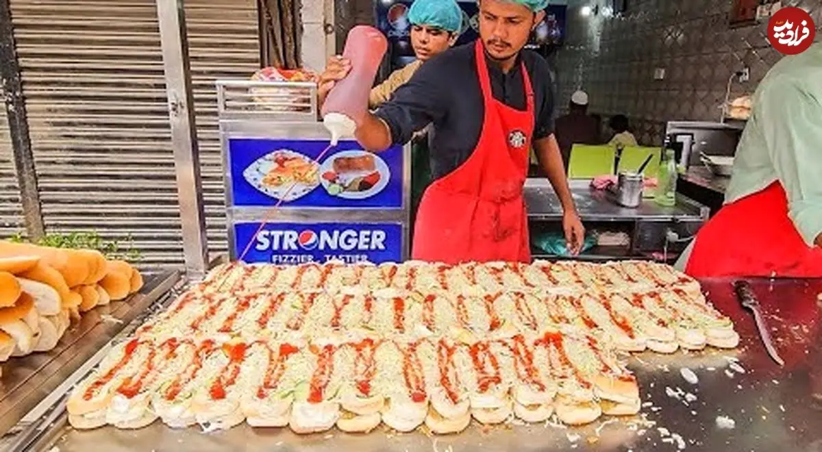 ببینید| غذای خیابانی در پاکستان؛ مهارت آشپز خیابانی در تهیه برگر با تخم مرغ در کراچی
