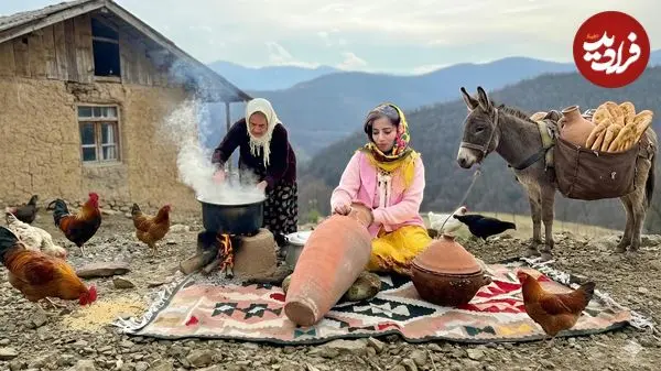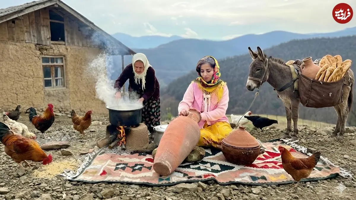 ببینید| غذای روستایی در ایران؛ تهیه کره خانگی و پخت نان تافتون در تنور