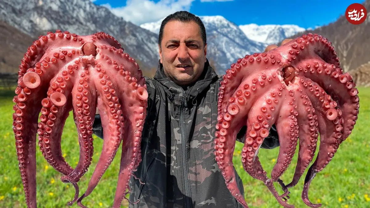 ببینید| غذای روستایی در آذربایجان؛ پخت یک غذای خاص با اختاپوس در یک روستای بهشتی