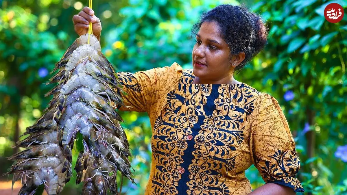 ببینید| غذای روستایی در سریلانکا؛ پخت یک غذای خاص با میگو، سبزیجات و مرغ در روستا